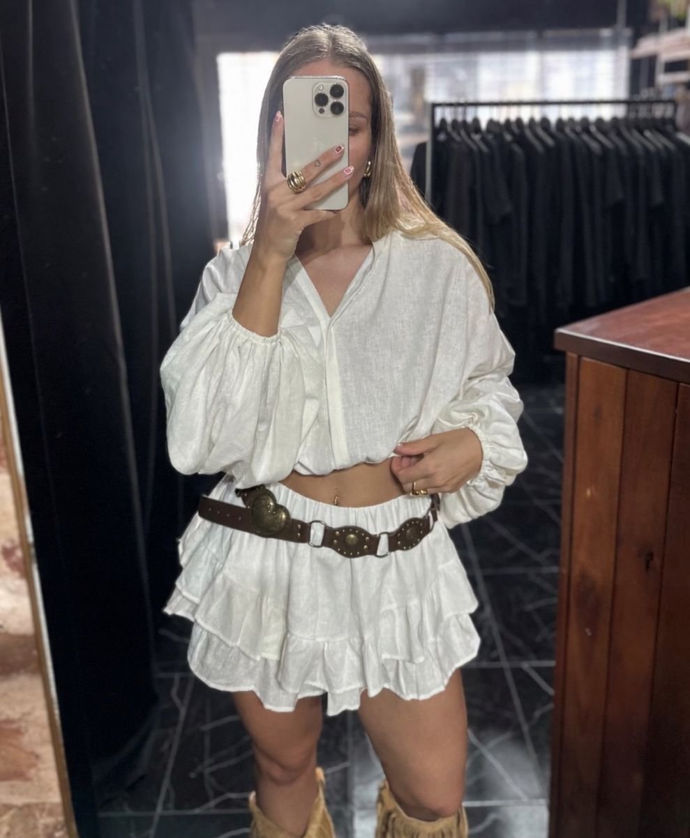 Blusa de lino liviano con diseño romántico y silueta relajada. Cuenta con escote en V, mangas amplias con frunce y cintura elastizada que genera volumen y un calce cómodo y favorecedor. Ideal para looks frescos y versátiles, perfecta para combinar con jeans, sastreros o faldas y lograr outfits elegantes con un toque urbano.