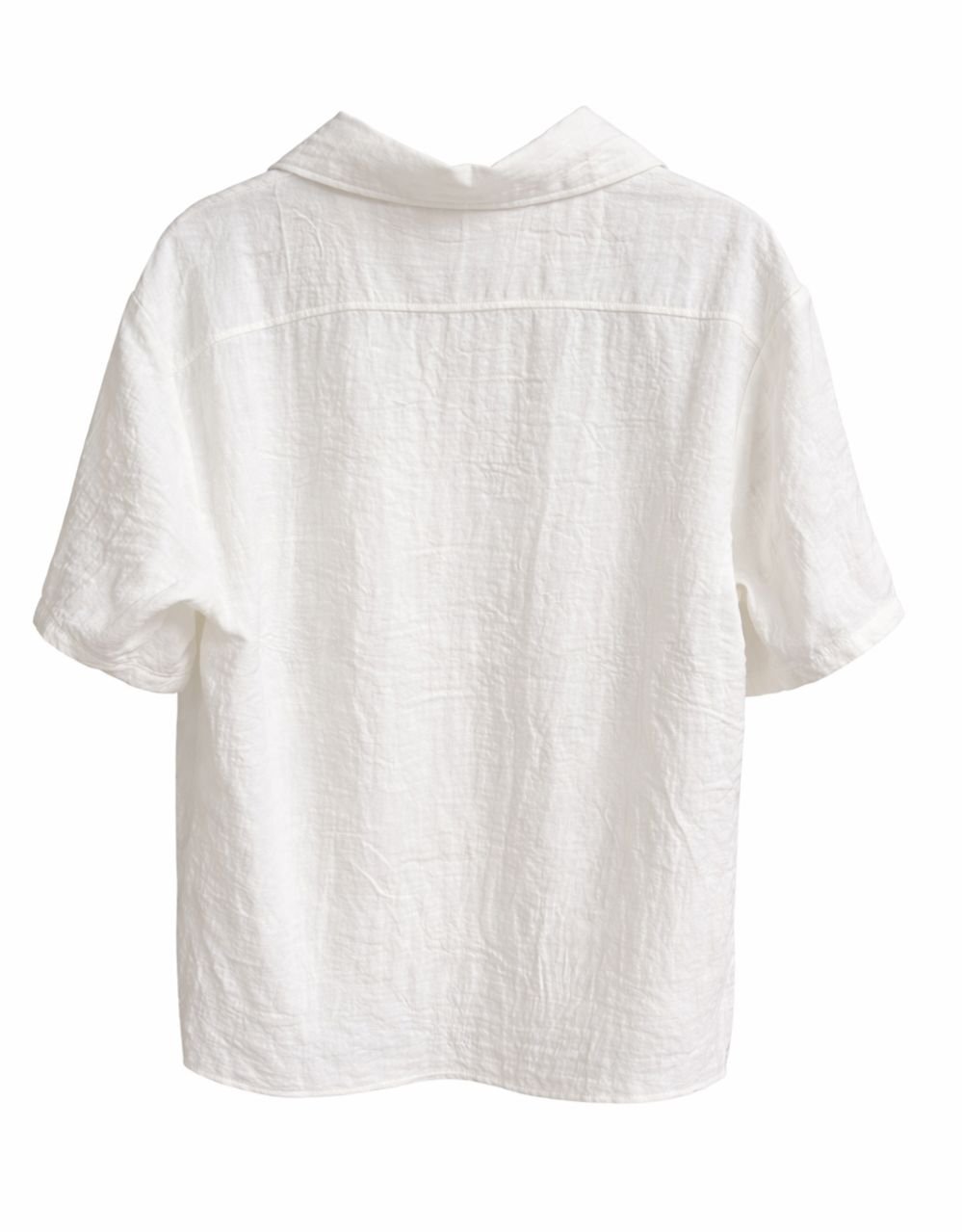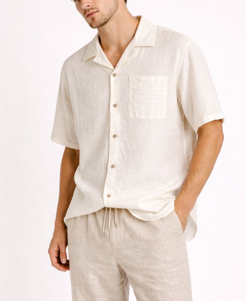Camisa oversize de lino para hombre, de estilo relajado y diseño moderno. Confeccionada en lino liviano y respirable, ideal para climas cálidos gracias a su textura fresca y natural. Presenta mangas cortas, cuello tipo cubano, botonera frontal, bolsillo en el pecho y un calce amplio que aporta comodidad y caída suelta.