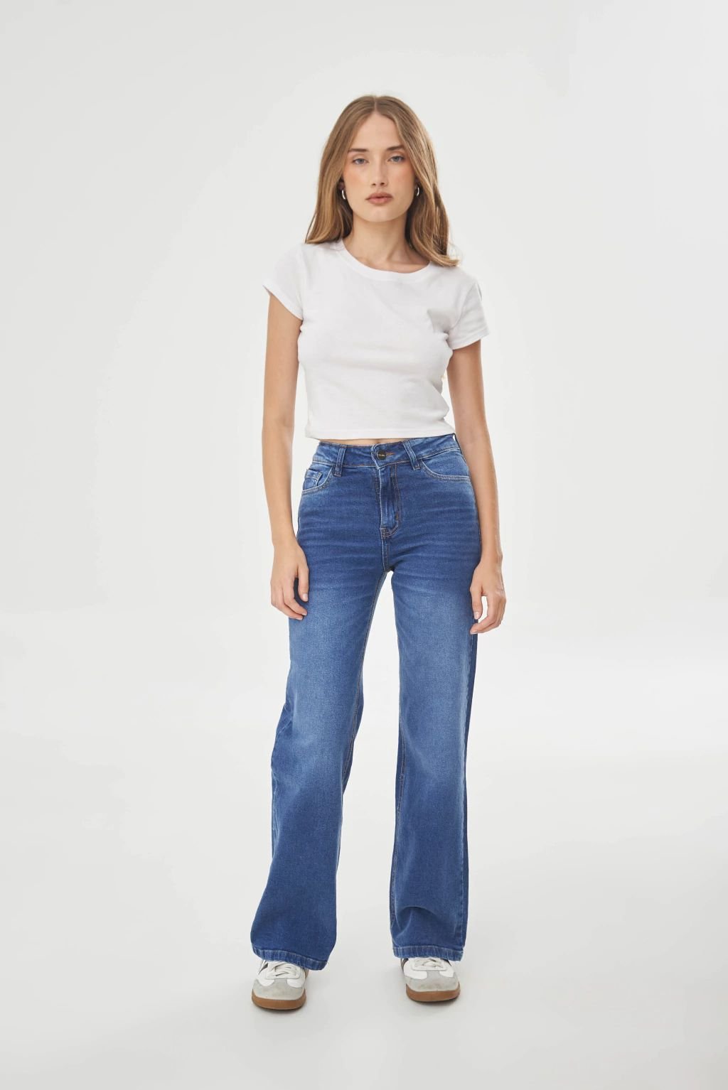 Jean wide leg en lavado azul clásico, con tiro medio/alto y calce amplio que estiliza la silueta y alarga las piernas. Confeccionado en denim cómodo y resistente, cuenta con bolsillos funcionales y caída recta que aporta un look moderno, urbano y versátil. Ideal para combinar con crop tops, remeras básicas o blazers y armar outfits relajados pero con mucha presencia.