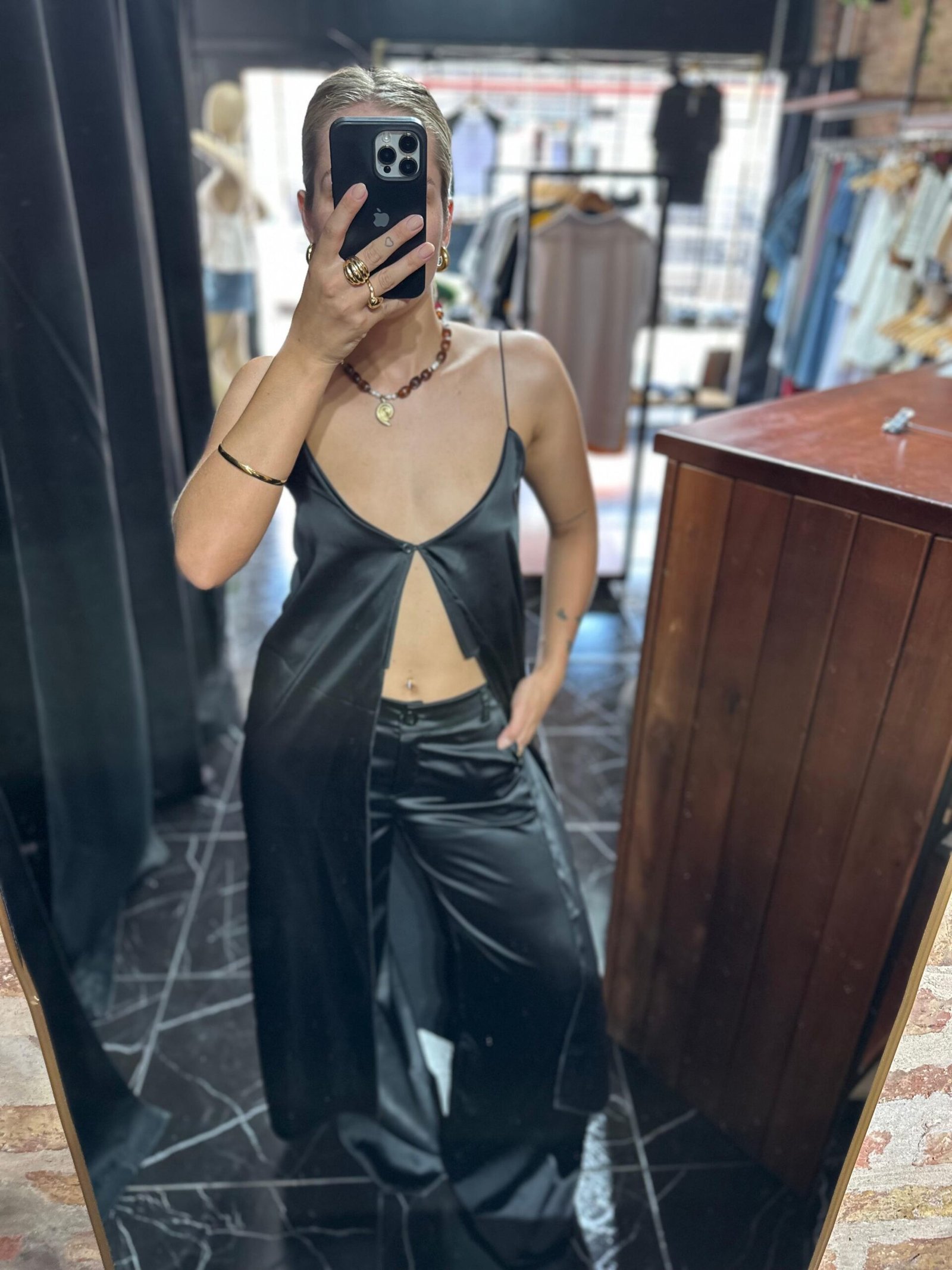 Kimono largo de caída fluida confeccionado en tela satinada liviana, con brillo suave y movimiento elegante. Su diseño minimalista con breteles finos y abertura frontal aporta un aire etéreo y femenino, ideal para usar abierto o apenas cerrado según el look. Perfecto para superponer sobre conjuntos básicos, vestidos o bikinis, sumando sofisticación sin esfuerzo. Una prenda versátil que eleva cualquier outfit, tanto de día como de noche.