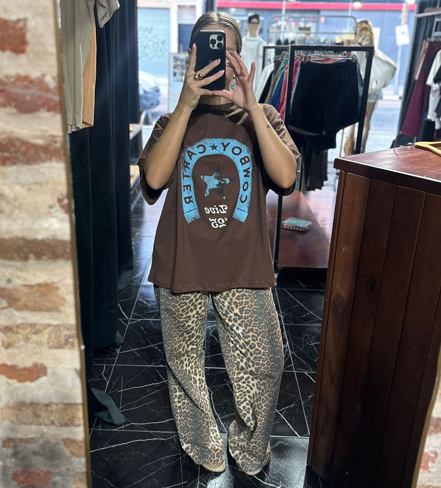 Remera oversize de algodón con caída relajada y estilo urbano. Presenta estampa frontal con inspiración western en tonos celestes que aporta personalidad y un look vintage moderno. Su fit amplio la convierte en una prenda cómoda, versátil y fácil de combinar con jeans, joggers o baggy para un outfit street con actitud.
