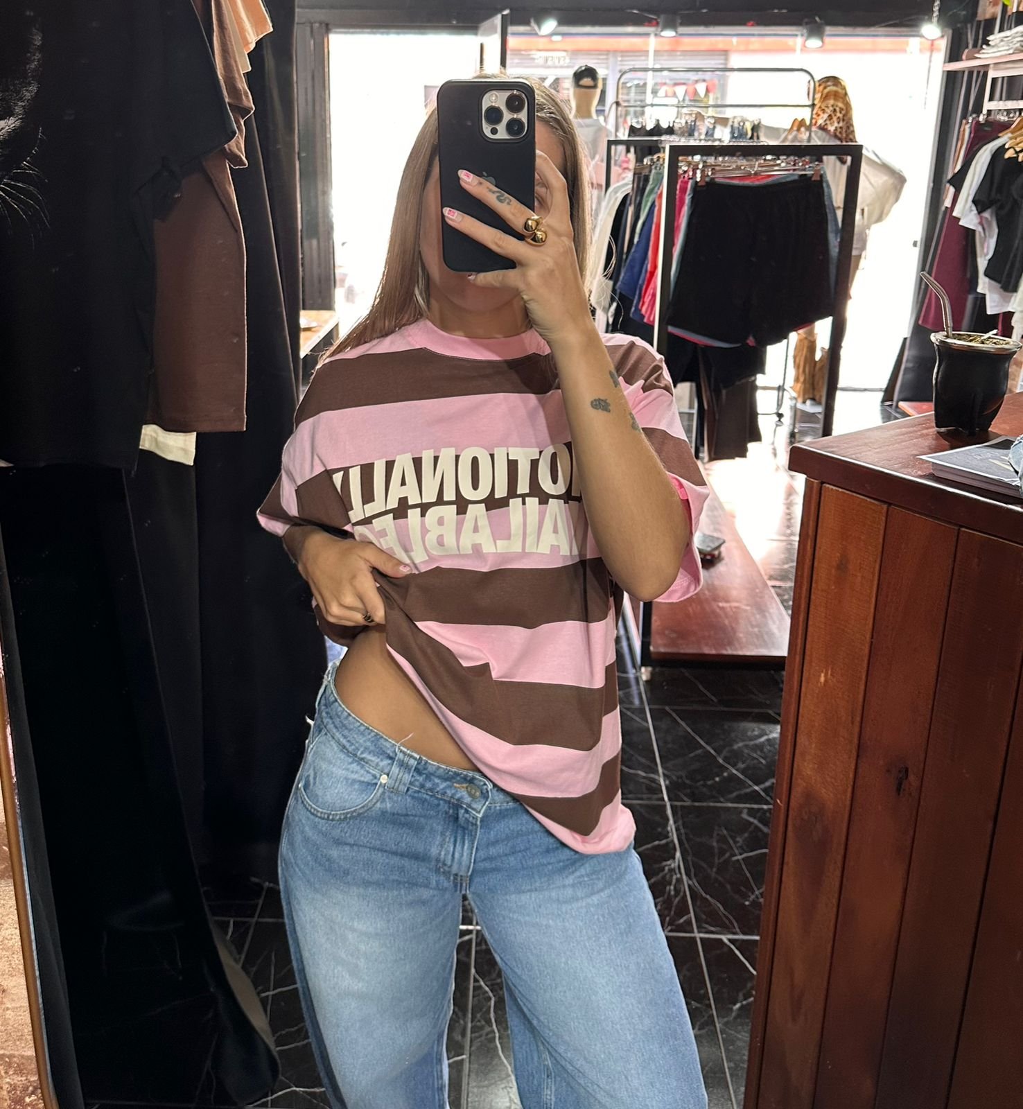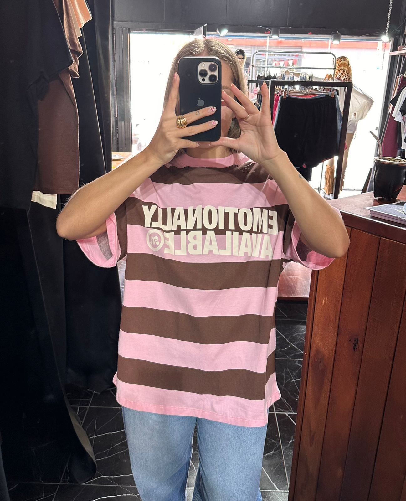 remera-oversize-emotionally-rosa-con-marron CategoriesMen, Remeras, Unisex, Women