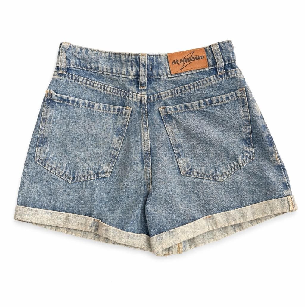 Short de jean tiro alto, confeccionado en denim rígido de lavado azul clásico. Presenta calce recto con terminación doblada en el ruedo, logrando un equilibrio perfecto entre urbano y casual. Cuenta con bolsillos delanteros y traseros funcionales, cierre con botón metálico y presillas para cinturón. Una prenda versátil y atemporal, ideal para combinar con tops básicos, musculosas o camisas oversized, tanto de día como de noche. Perfecto para un look relajado pero con estilo.