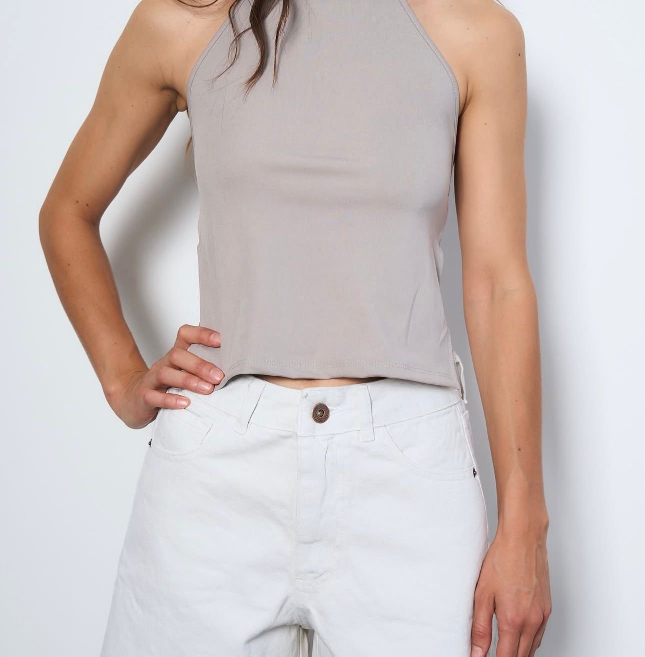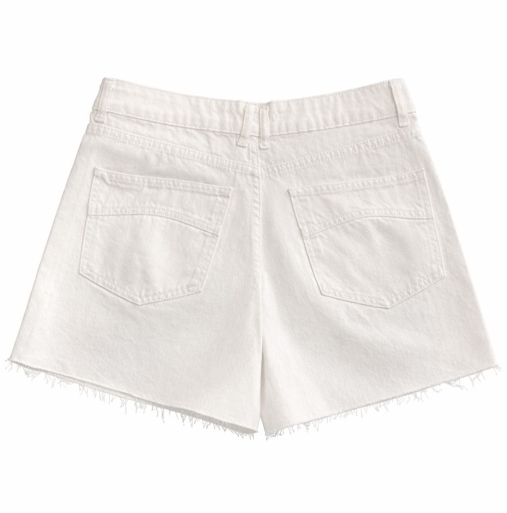 Short de denim color tiza – tiro medio Short confeccionado en denim color tiza, de largo tipo bermuda corta. Presenta tiro medio, calce recto y cómodo, con bolsillos delanteros y traseros, cierre con botón metálico y terminación desflecada en el ruedo. Una prenda versátil y canchera, ideal para looks relajados y urbanos, perfecta para combinar con tops, remeras o camisas en outfits de día.