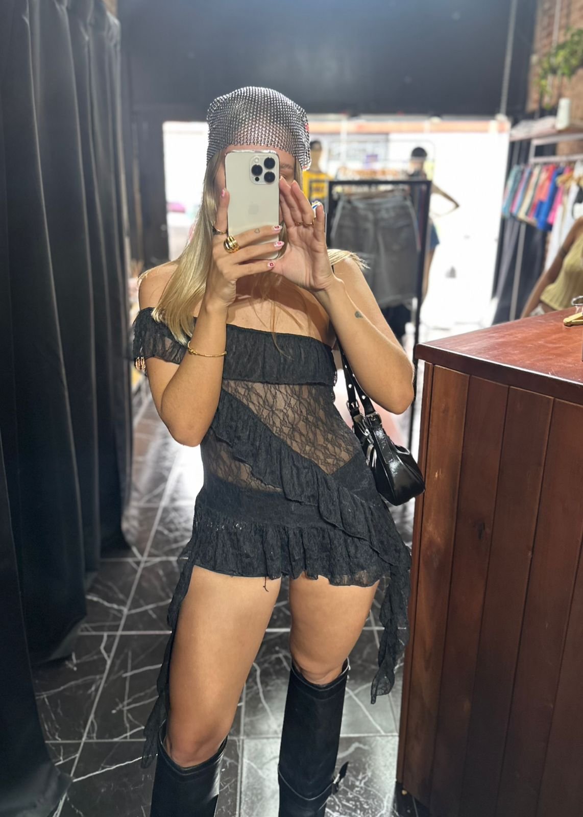Top de encaje delicado con diseño off shoulder que deja los hombros al descubierto, ideal para lograr un look femenino y relajado. Su tejido liviano y semitransparente aporta un aire romántico y bohemio, mientras que los detalles de volados y la terminación irregular le dan movimiento y personalidad. Perfecto para combinar con shorts, jeans o faldas, tanto para festivales, días de verano o looks casuales con estilo. Una prenda versátil que eleva cualquier outfit boho chic.
